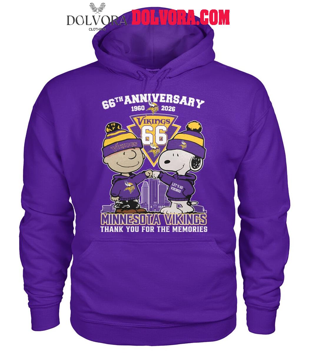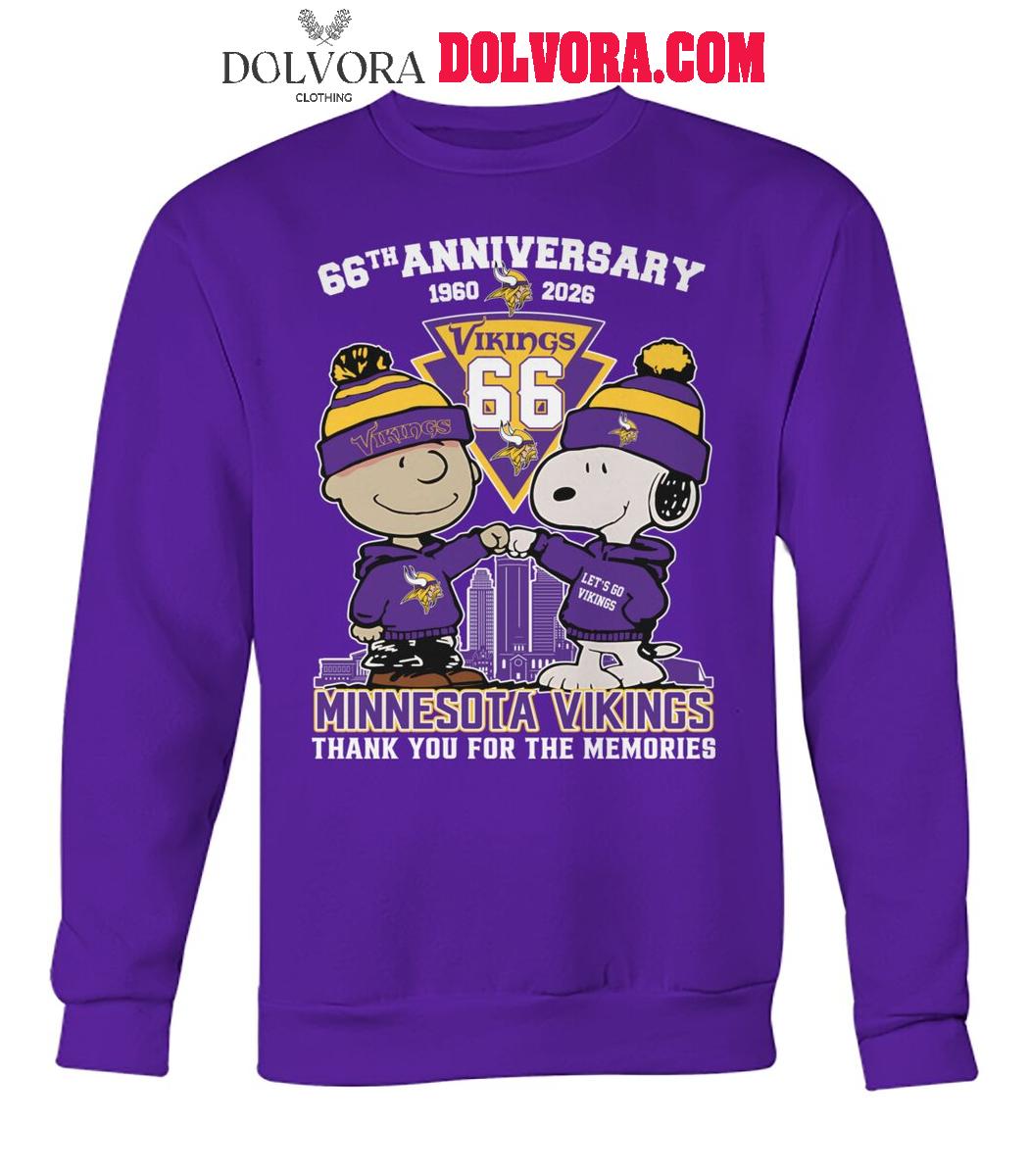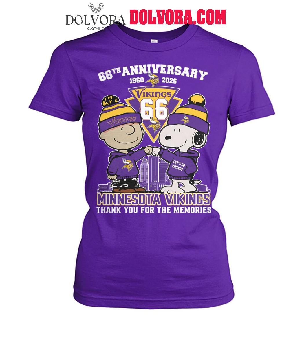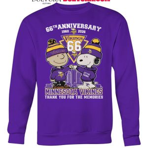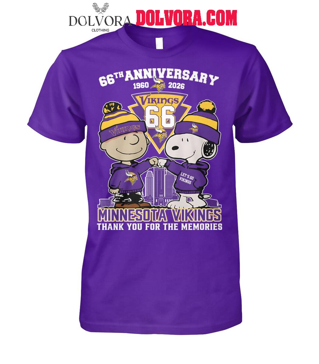 The Minnesota Vikings Peanuts 1960–2026 Thank You For 66 Years Of Memories T-Shirt is a heartfelt tribute to more than six decades of Vikings football, celebrating the passion, tradition, and unforgettable moments that unite generations of fans. Designed for loyal members of Vikings Nation, this commemorative T-shirt blends classic Peanuts nostalgia with iconic Minnesota Vikings pride.