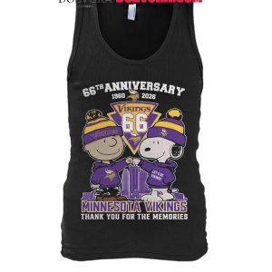 Perfect for longtime supporters, anniversary celebrations, or as a thoughtful gift, the Minnesota Vikings Peanuts 1960–2026 Thank You For 66 Years Of Memories T-Shirt is more than just apparel—it’s a celebration of loyalty, tradition, and 66 unforgettable years of Minnesota Vikings football.