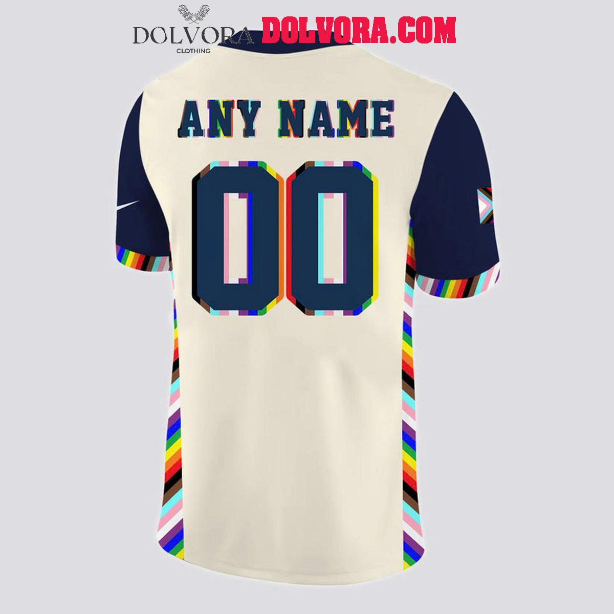 What makes this Patriots New Pride jersey truly special is its full personalization option. Fans can customize the jersey with any name and number, creating a unique, one-of-a-kind piece that reflects personal identity and team pride. The bold numbers feature colorful Pride accents, adding a powerful visual statement while maintaining an authentic football aesthetic.
