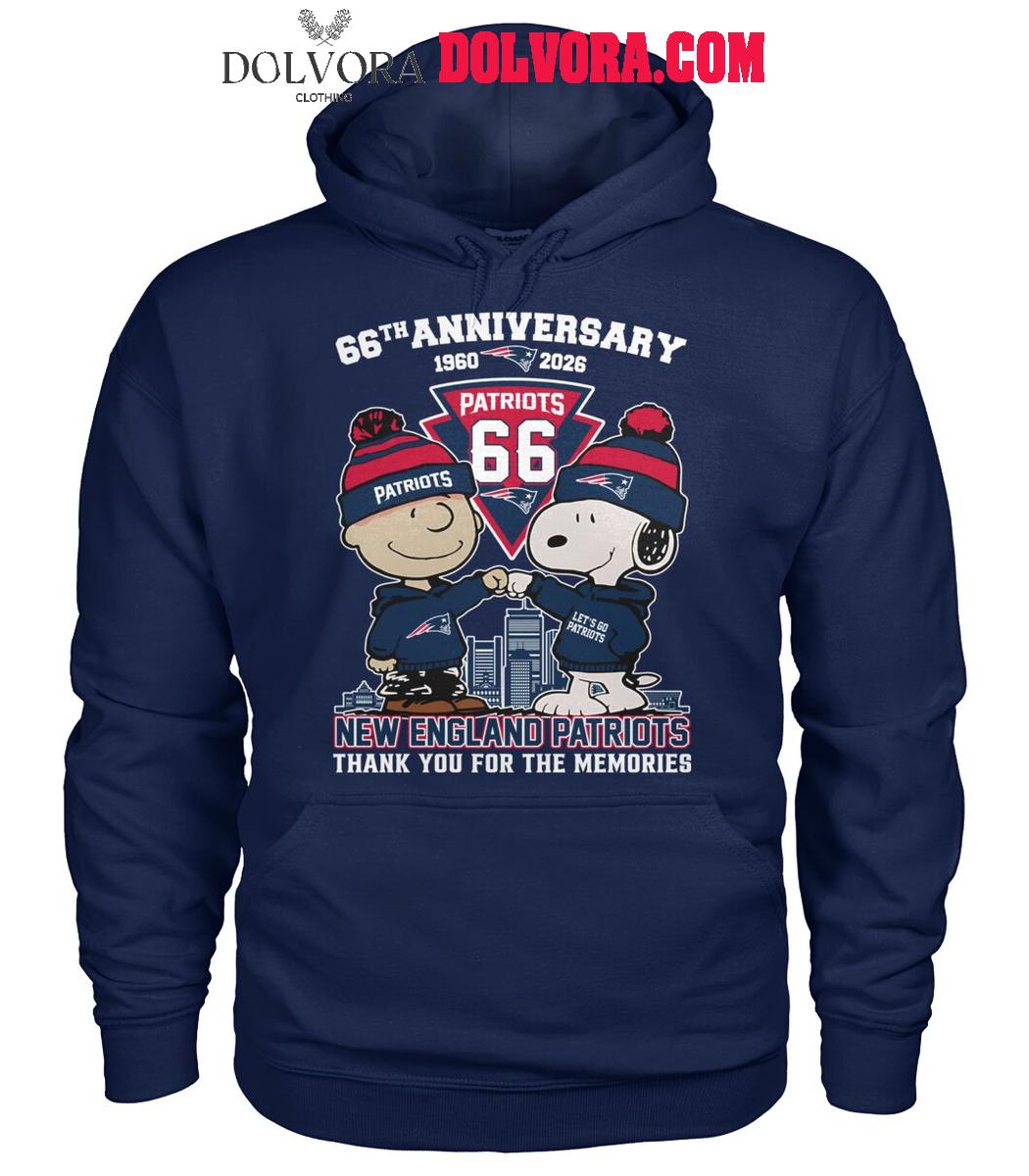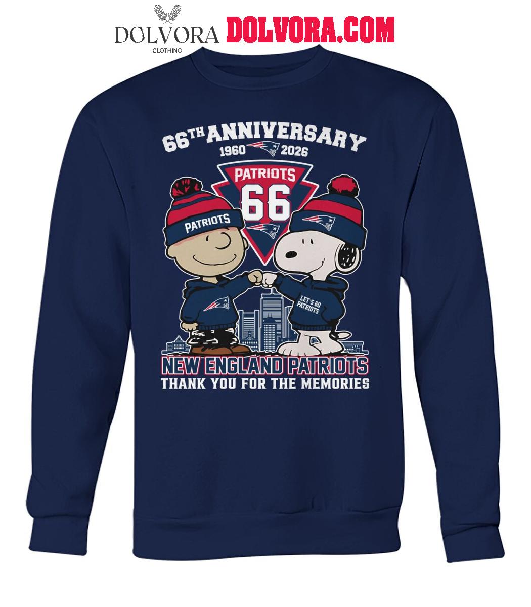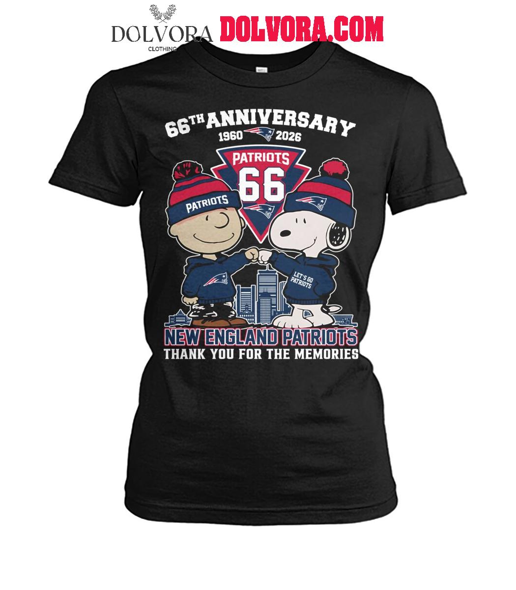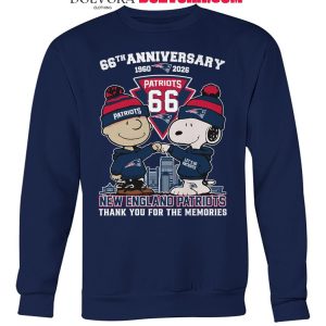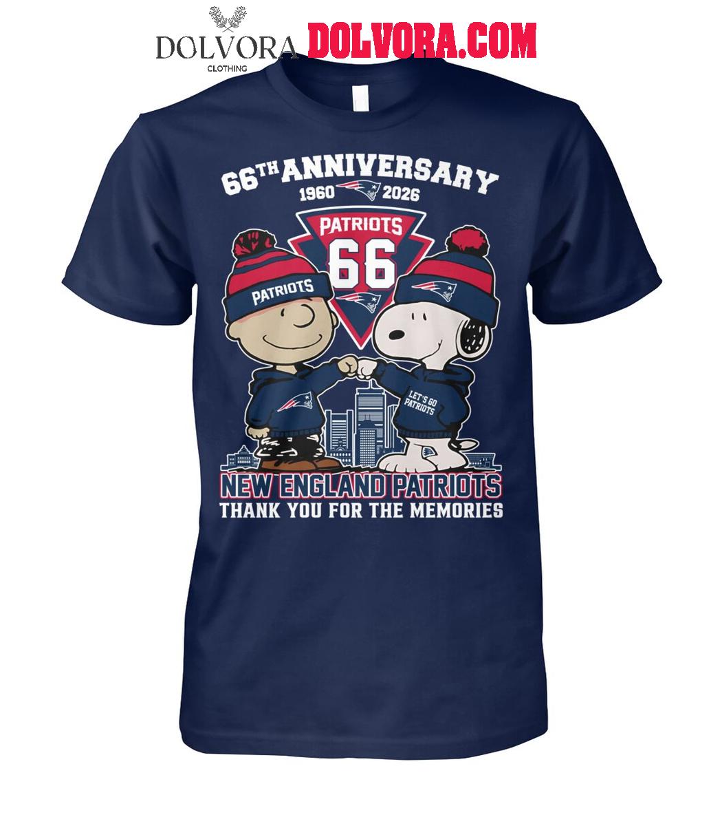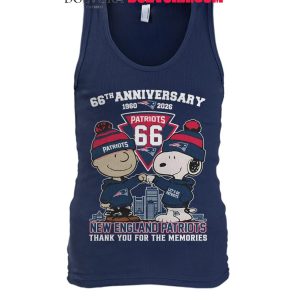 The New England Patriots Peanuts 1960–2026 Thank You For 66 Years Of Memories T-Shirt is a meaningful tribute to more than six decades of Patriots football, celebrating the history, championships, and unforgettable moments that have defined one of the NFL’s most successful franchises. Designed for loyal Patriots fans, this commemorative T-shirt blends classic Peanuts charm with iconic New England Patriots pride.