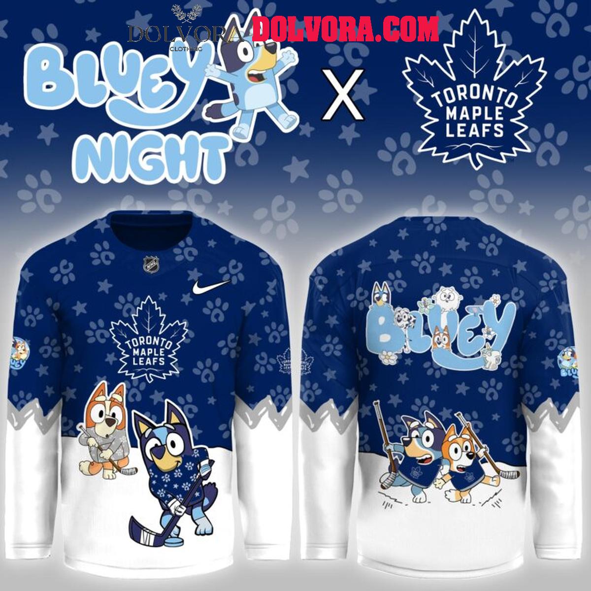 Celebrate the New Year 2026 with timeless hockey tradition and playful creativity in the Toronto Maple Leafs Bluey New Year 2026 New Season Personalized Hockey Jersey. Designed for passionate Toronto Maple Leafs fans and families who adore the joyful spirit of the Bluey animated series, this jersey delivers a unique crossover that blends classic NHL-inspired style with modern fun.